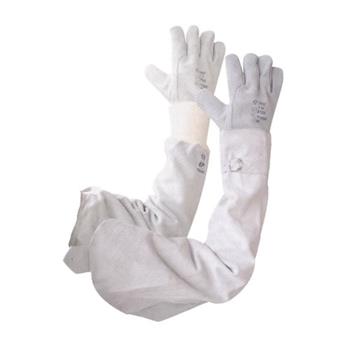 HEGESZTŐ KARVÉDŐ - GUMIS - marhahasíték bőr - véd hegesztő munkálatoknál keletkező hőhatás ellen (szikrák és fémolvadékok) - 1,2 mm vastag natúr bőr, 45cm hosszú - gumírozott kivitel - kesztyű nélkül - EU szabvány: EN470, EN532