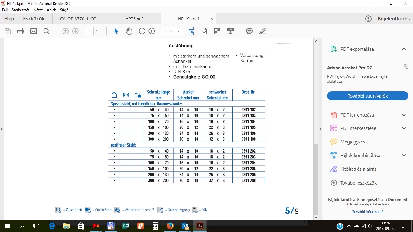 90° acél derékszög jellemzői: