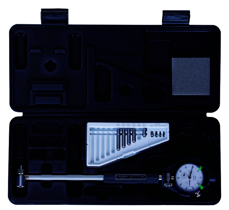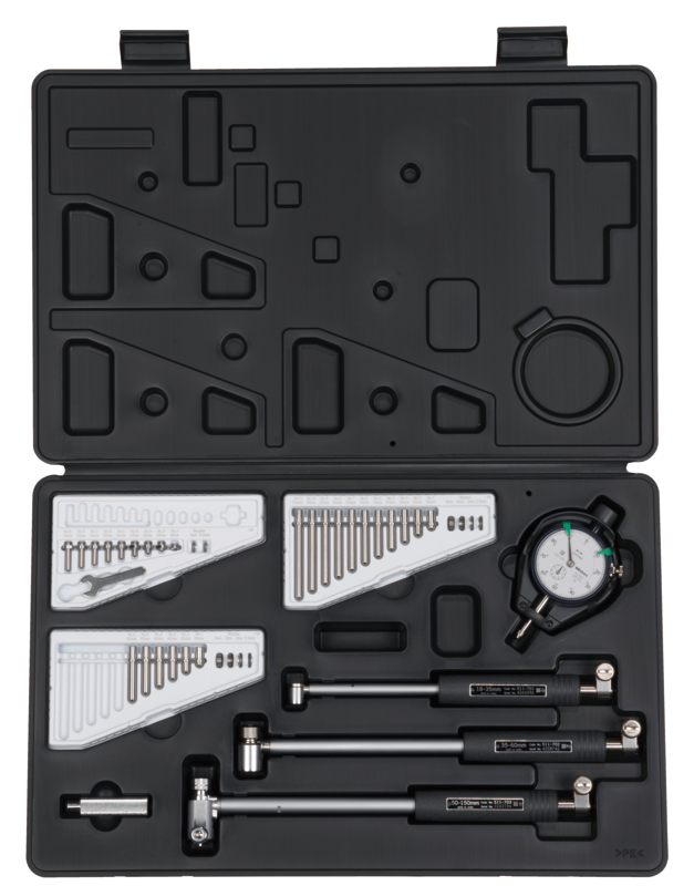 Sorozat 568 • OK/NOK tűréskijelzéssel • Pontosság 6-20 mm : ±5 μm / 0.00025" • 20-125 mm : ±6 μm / 0.0003" • Felbontás 0,001 mm vagy 0,001 mm/0.00005" • Mérőcsap Titán bevonat • Hibahatár 0,005 mm (6-20 mm méréstartomány) • 0,006 mm (20-125 mm méréstartomány) 3-ponton mérő Digimatic furatmérő eszköz. Mindegyik készlet rendelkezik egy alaptesttel és cserélhető mérőfejekkel. Az Absolute Borematic az alábbi előnyöket kínálja: Gyors és egyszerű mérés. Titán-bevonatolt mérőcsap kiválóan kopás- és ütésálló. Nagyméretű 11mm kijelző. 330°-ban elforgatható kijelző. OK/NOK minősítés funkció. Funkciózár.