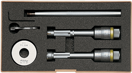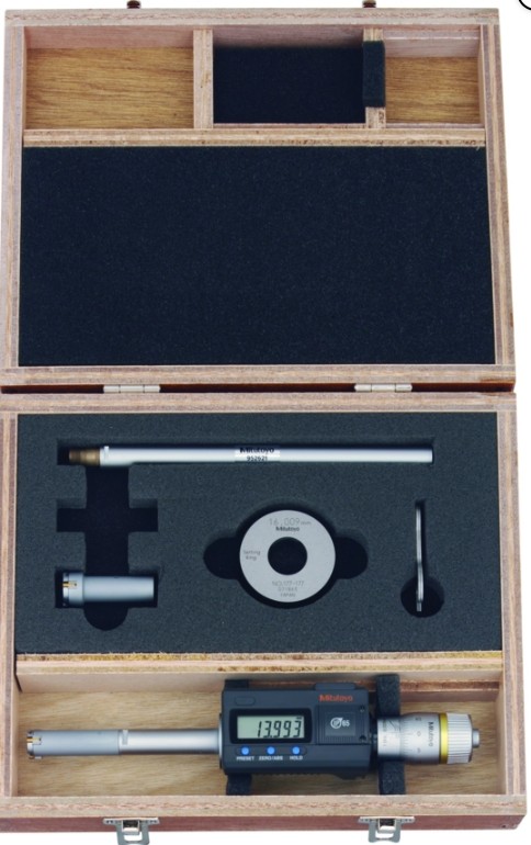 A 3-ponton mérő belső mikrométer a következő előnyöket nyújtja: Cserélhető mérőfej készlet. Titán-bevonatolt mérőcsap a tartósság és ütésállóság érdekében. Kiváló IP65 védelem, amely lehetővé teszi a közvetlen gyártásban való felhasználását. Nagyméretű 7,5mm-es LCD kijelzője könnyű leolvasást biztosít. Beállítógyűrűkkel és hosszabbítókkal. Coll-mm: Metrikus Digitális/Analóg: Digitális Tartomány: 20–50 mm Felbontás: 0,001 mm Tápegység: 1 battery SR-44 Egyedi tartomány: 20–25, 25–30, 30–40, 40–50 mm Elem élettartam: kb. 1,2 év Kijelző: LCD, character height 7.5 mm Mérési felület: Titanium coated tungsten carbide (6-12 mm) Titanium coated hardened steel (12-200 mm) Taper: tungsten carbide Beállítógyűrűvel: ø25 mm (177-139) ø40 mm (177-290) Megjegyzés: 150 mm hosszabbító ZERO/ABS: Igen Auto kikapcsolás (< 20 perc): Igen Riasztás alacsony felszültségnél: Igen Zárolás funkció: Igen HOLD: Igen 2 x PRESET: Igen Adatkimenet: Igen Szállítva: Including box, hex wrench, spanner (2 pcs.), screwdriver, 1 SR44 battery, setting rings (2 pcs.), extension rod, certificate of inspection Tömeg: 1170 g