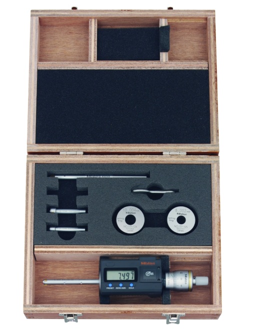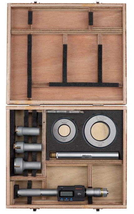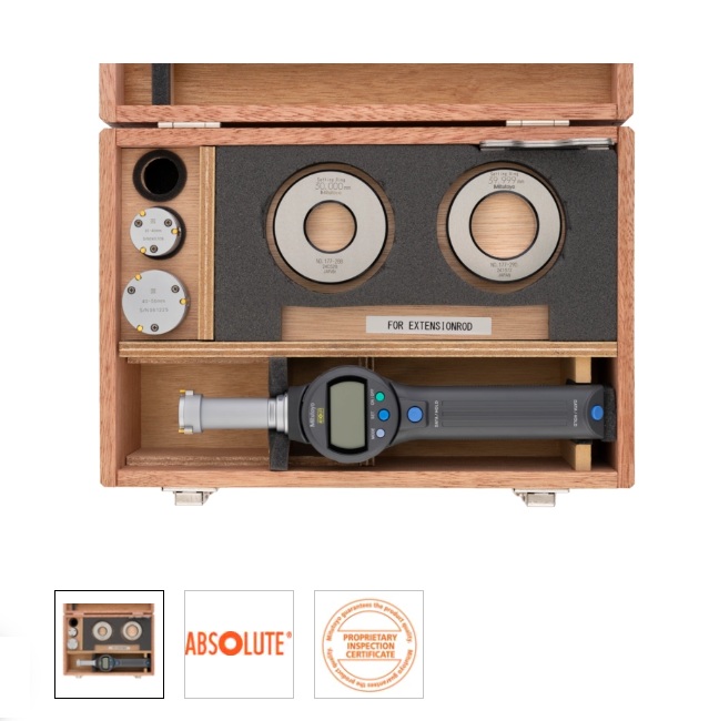3-ponton mérő Digimatic furatmérő eszköz. Mindegyik készlet rendelkezik egy alaptesttel és cserélhető mérőfejekkel. Az Absolute Borematic az alábbi előnyöket kínálja: Gyors és egyszerű mérés. Titán-bevonatolt mérőcsap kiválóan kopás- és ütésálló. Nagyméretű 11mm kijelző. 330°-ban elforgatható kijelző. OK/NOK minősítés funkció. Funkciózár.