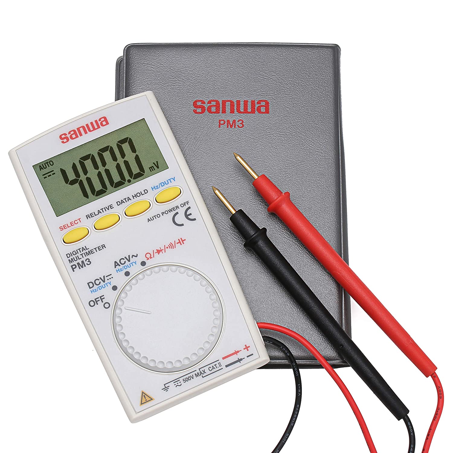 Többfunkciós digitális zsebmultiméter automatikus méréshatár váltással (4000 kijelzés) Feszültség: DC 400m/4m40m400/500 ±(0,7%+3)/0,1mV (10-100MΩ) AC 4/40/400/500 ±(2,3%+5) 1mV (10-11MΩ) R: 400/4k/40k/400k/4M/40M ±(2%+5)/0,1Ω C: 50n/500n/5μ/50μ/200μ ±(5%+10)/0,01nF F: 9,999/99/99/999,99/9,99k/60kHz ±(0,7%+3)/0,001Hz Kitöltési tényező: 0.1-99% Szakadásvizsgálat: 10-120Ω kb 0,4V teszt feszültség Diódateszt: nyílthurkú feszültség: 1,5V Sávszélesség: 45-400Hz méret: 108x56x11,5 tömeg: 85g Elem: CR2032