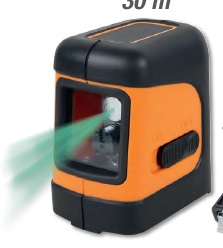 KERESTLÉZERES SZINTEZŐ, 30M, TOKBAN keresztlézeres szintező, 30 méter, zöld fényű, mágneses talppal és fali konzollal, tokban 1697 MŰSZAKI ADATOK • önbeálló kereszt • kézi használathoz az önbeálló funkció kikapcsolható • lézerdióda 515 Nm, 2. lézerosztály • hatósugár: 30 m • pontosság: 5 m-en ± 1 mm • önbeálló tartomány: 3° ± 0.5° • ABS és csúszásmentes gumi test • 1/4"-os csatlakozó • 2xAA elem • elem üzemidő: 4 óra TALP: • mágneses talp egyedi és kombinált felhasználásra, 1/4"-os csatlakozó • az állítható rögzítőkonzollal különböző fa- és fémprofilokhoz rögzíthető (a mágneses talppal együtt alkalmazva) • gyors, 90°-os vízszintes és függőleges beállítás