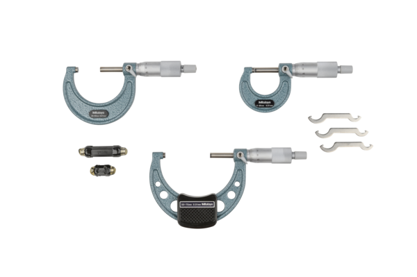 3-ponton mérő Digimatic furatmérő eszköz. Mindegyik készlet rendelkezik egy alaptesttel és cserélhető mérőfejekkel.