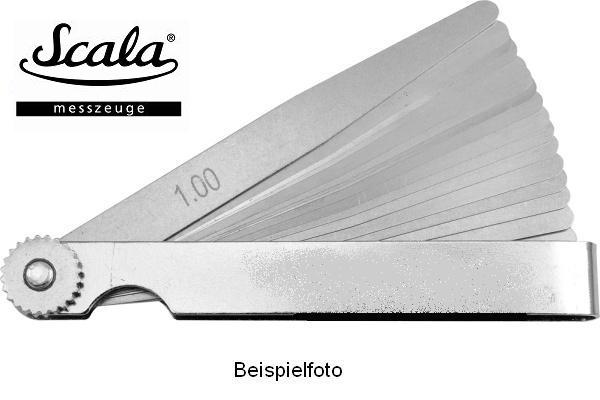Mitutoyo hézagmérő készlet 20 levélből áll, amelyeken a méretek egyértelműen vannak jelölve. A levelek levehetők a tartóról. Edzett szerszámacélból készül.