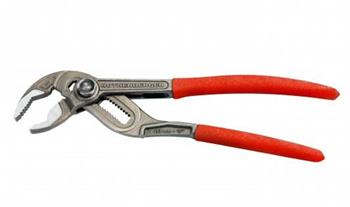 Gyorsan állítható vízpumpafogó ● Széles markolatok a nagyobb kényelem és a jobb erőátvitel érdekében ● Biztonsági rögzítő rendszer: megakadályozza a véletlen nyitást és akár 50%-kal gyorsabb beállítást tesz lehetővé ● 18 beállítási pozíció a változatos munka érdekében ● 30%-kal nagyobb fogókapacitás*: 10“-os fogó 2“ csőátmérőig