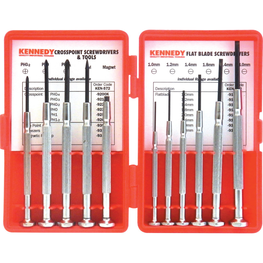 Ez a 11 darabos készlet minőségi precíziós csavarhúzókból áll, és precíziós munkákhoz alkalmas párhuzamos és kereszthornyos csavarhúzókat tartalmaz. Mindegyik meghajtó nikkel-króm-molibdén ötvözetű acélból készül, és ékszerészmintás krómozott markolattal van ellátva. Piros műanyag tokban szállítjuk.
