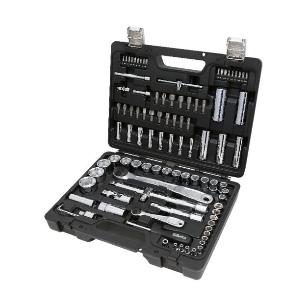 74 hatlapfejű dugókulcs, 42 csavarhúzóbetét, 30 csavarhúzó dugókulcs, 7 hajlított imbuszkulcs és 17 tartozék készlet műanyag dobozban