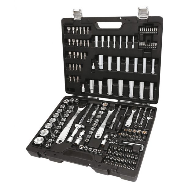 Ez a piros hordtáskában szállított 30 darabos metrikus dugókulcskészlet egy sor dugókulcsot, csavarhúzóhegyet és különböző tartozékokat tartalmaz minden munkához. Az átfogó készlet ideális módja annak, hogy minden kéznél legyen, amire egy munka során szüksége lehet. Minden alkatrész tartós króm-vanádium acélból készült, polírozott krómozott felülettel.