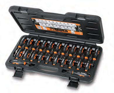 Rövid bitek a szűk helyeken lévő csavarokhoz és hosszú bitek a mélyen ülő, szorosan illeszkedő csavarokhoz való hozzáféréshez. Praktikus tárolósín mellékelve. S2 króm-vanádiumból készült.