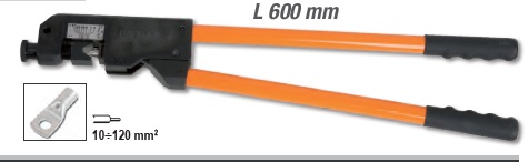 Újdonság • Szigeteletlen réz kábelsarukhoz 10-120 mm² • Csúszásmentes guminyél • A belső csapszeg "H"-profilja maximálja a csapszeg csúszását. • Barnított acélból Matricaméret: 10 mm -120 mm² Tömeg: 3,477 kg