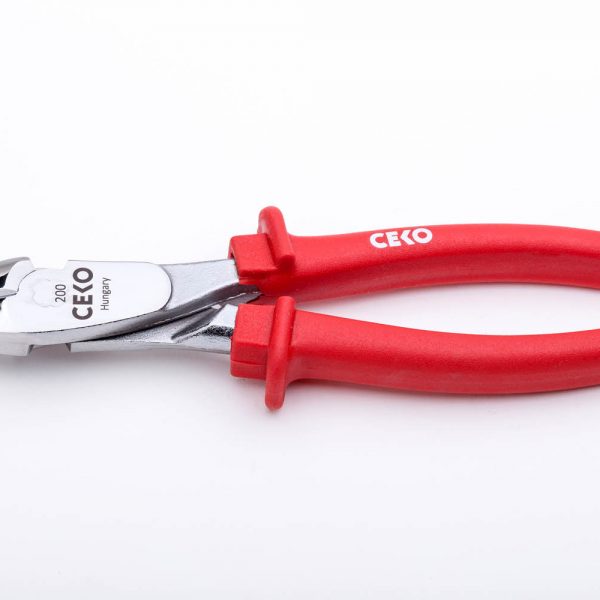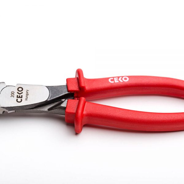 Anyag:Különleges összetételű szerszámacél,kovácsolva és teljes egészében nemesítve.Vágó élek indukciósan edzve.A fogószárak tartós műanyag bevonattal ellátva.