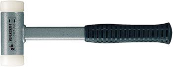 Erős acél középrész, felfogócsappal és vállal a betétek befogásához. Kopásálló nylon betétek (közepesen kemény). Visszaütésmentes a kalapácstestben elhelyezett súlyok miatt. Becsapódáskor a súlyok lefelé mozognak és a visszacsapódás ellen hatnak.