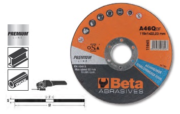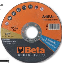Rendkívül nagy teljesítményű korongok • Rozsdamentes acél, acélötvözet, hőkezelt/kezeletlen acél vágásához • Magas anyagleválasztási teljesítmény, alacsony szerszámkopás. • A korong minimális mértékben melegszik • Kisebb sorjaképződés • Kisebb elektromos szerszám teljesítményigény • Nagy teljesítményű elektromos szerszám használata ajánlott Az új Beta Abrasives termékcsalád a piacvezető AbraBeta és Elpa gyártási szakértelmének köszönhetően kemény és rugalmas csiszolóanyagok széles palettáját és kiemelkedő műszaki szolgáltatásait kínálja szakemberek számára. Főbb jellemzők: • Véletlen beindítás elleni védelem • Mindkét oldalra felszerelhető kiegészítő markolat • Szerszám nélküli korongcsere (gyorskioldó) • Tengelyzár a gyors korongcseréhez • Reteszelhető tolókapcsoló • A porvédővel kialakított levegőcsatorna optimális hűtést biztosít • Szervizkulccsal szállítva Műszaki adatok • Felvett teljesítmény: 1400 W • Tápfeszültség: 2240-240 V / 50 Hz • Korong átmérő (korong nélkül szállítva): 125/115 mm • Üresjárati fordulatszám: 3000 - 10000 fordulat/perc • Felfogóméret: M14 • Gabalyodásmentes kábel hossza: 4 m • Súly: 2.5 kg + Sarokcsiszoló • Nagy teljesítményű motor (1400 W) - Változtatható fordulatszám • Csúszásmentes, ergonomikus markolat a nagyobb kényelemért és biztonságért • A lapos hajtóműfej lehetővé teszi a szűk helyeken való munkavégzést